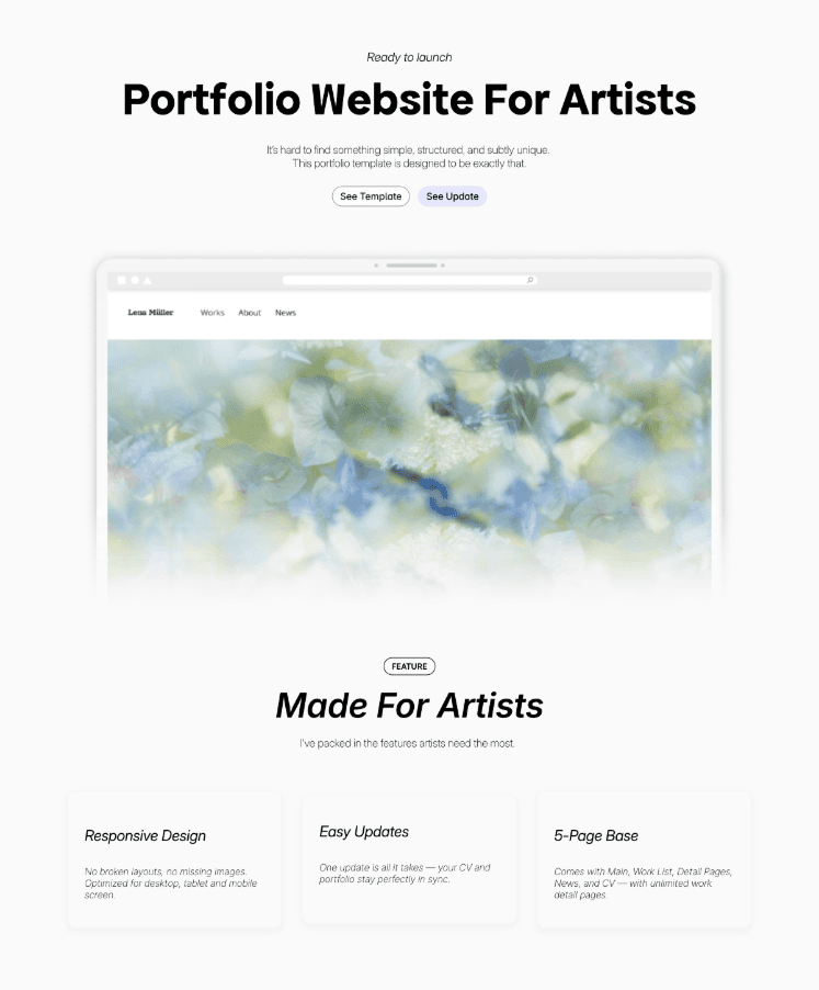 I found many artists prefer a completely blank 'Home' page without any function or information. I understand the aesthetic appeal of a clean slate or the desire to make visitors dig for the work. However, showing your recent work on the Home page is incredibly helpful for visitors. When I research artist websites, I often want to quickly see if they have created new works. A clear, current Home page makes this check easy and signals that your practice is active and up-to-date.
