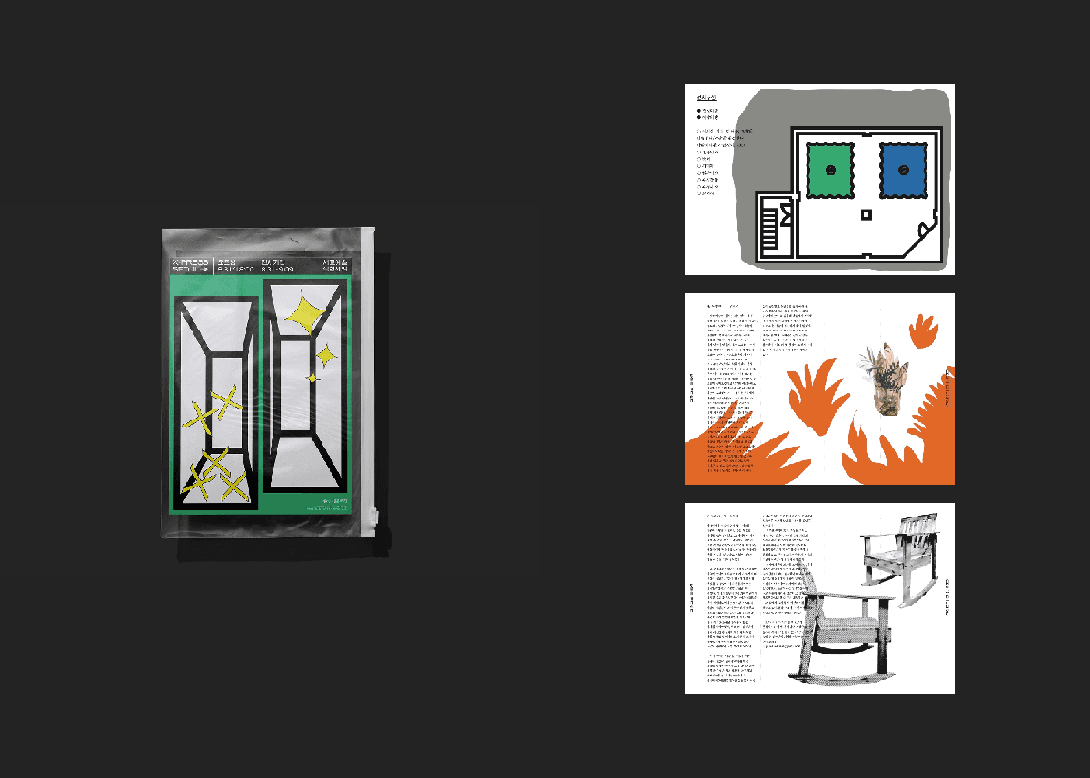 Our exhibition was conceptualized as a magazine launch event, building on a novel-based concept. My role included preparing essential documents and presentations, as well as artist and designer outreach. I collaborated extensively with the designer to shape the exhibition's design and visual identity. The space was dynamically arranged, presenting works from external artists alongside creations from our team. This event was a joint effort with Team X-Press, with design by Sangmin Cha.